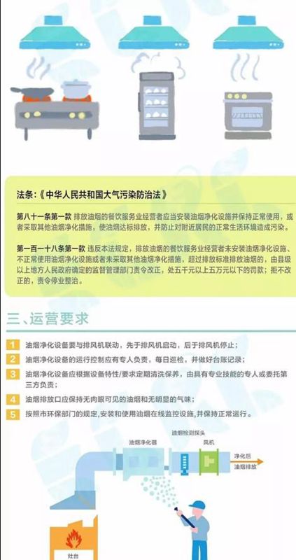 近期,太仓城管部门联合环保部门已启动针对餐饮业油烟净化器的专项整治行动。要求餐饮门店安装油烟净化设备,做到达标排放。那作为经营者该如何从容面对呢?今天,小编整理了关于餐饮油烟污染防治的方法,希望各经营者能以主体责任为担当,积极主动配合开展油烟治理工作。